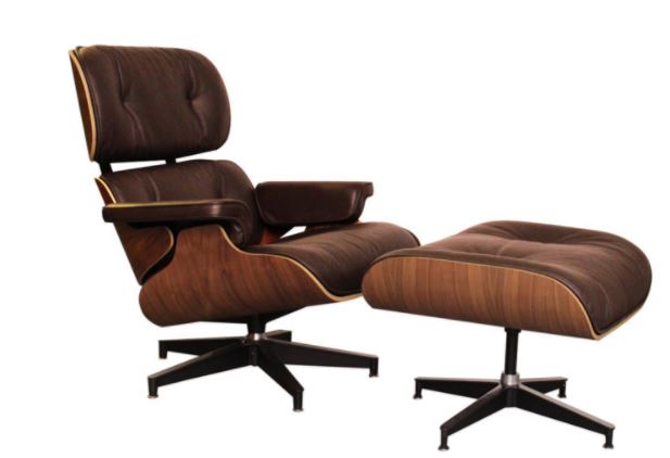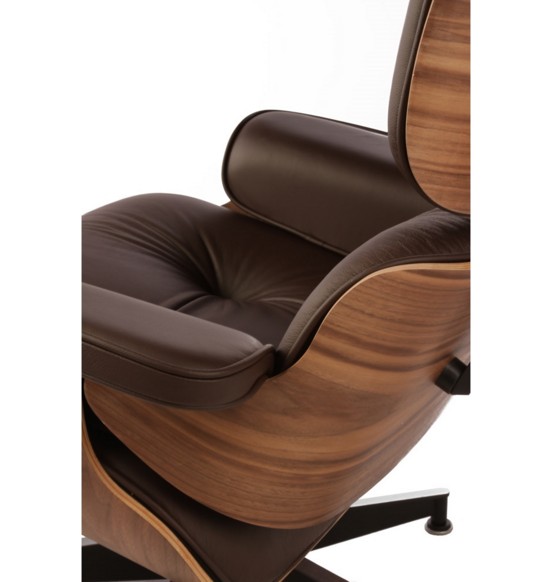 Eames Lounge Chair Replica in Rich Brown Leather & Walnut Veneer (with Ottoman)