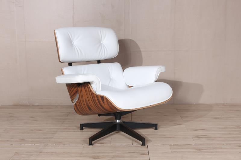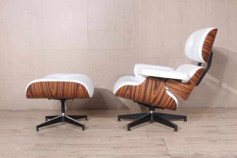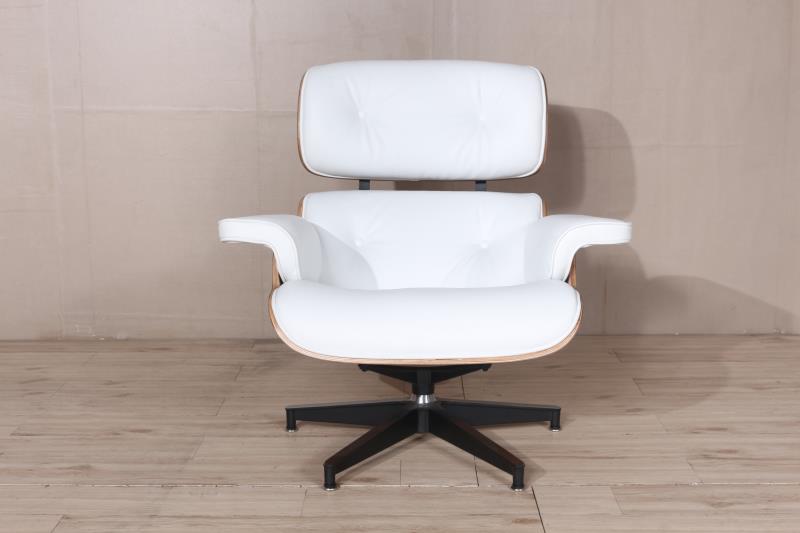Classic Charles Eames Lounge Chair And Ottoman Replica White Leather & Ash Wood